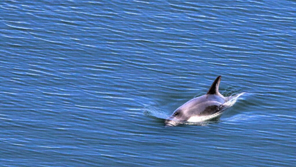 Nous faisons la pause déjeuner au bord du Canal Puyuhuapi, sur un spot recommandé sur iOverlander, pour y apercevoir des dauphins. Jack pot!! Ils sont là et nous profitons du spectacle avec d’autres touristes brésiliens.