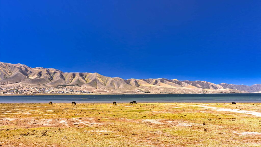 Nous allons déjeuner auprès du lac au pied du village El Mollar.
