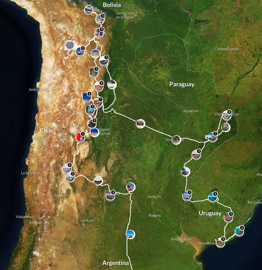 17/05/2023 au 13/09/2023 16 novembre 202319 décembre 2023 pseudo Amériques, Itinéraire Pour voir le détail, consulter Polarsteps. Uruguay, Brésil, Paraguay, Argentine, Bolivie, Argentine