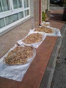 Hier soir nous avons mangé entre Français à 8. Très intéressants parcours. Un couple de Toulon le fait pour la 2ème fois par la voie d’Arles; ils voudraient créer un gite en Galice, parlant tous 2 espagnol. Un monsieur, marathonien, le fait à raison de 40km par jour. Deux dames le font doucement car ampoules++, l’une marche en « Crocks »…