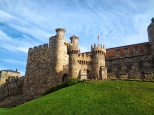 La vue de la forteresse des Templiers de Ponferrada nous fait penser aux petits fils. Un vrai chateau avec pont levis, crénaux, etc. De quoi jouer aux chevaliers.